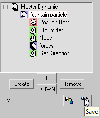 To create the TD-Tool you need to save the DynamicSet onto the hard disk into a thinkingParticles known folder (BlackBox folder). To do this select the DynamicSet and press the Save button (as shown below).