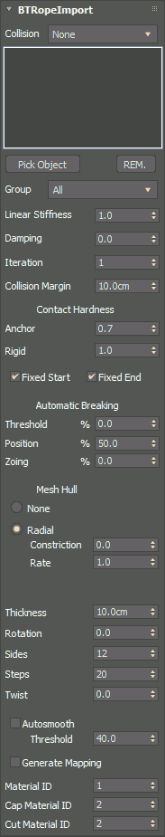 Generate Mapping - when checked, mapping coordinates for the rope mesh are created.