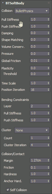 Cluster Iteration - sets the number of sub-steps to be used to estimate the real collision point of colliding objects. The lower this number, the faster the simulation will run. However, lower values would also mean less accurate results. In most situations, you can keep this value between 5-10, while in exceptionally complex scenes, you can try to set a value as high as 100 to get more accuracy. Note increasing this value also affects the soft-body behavior.